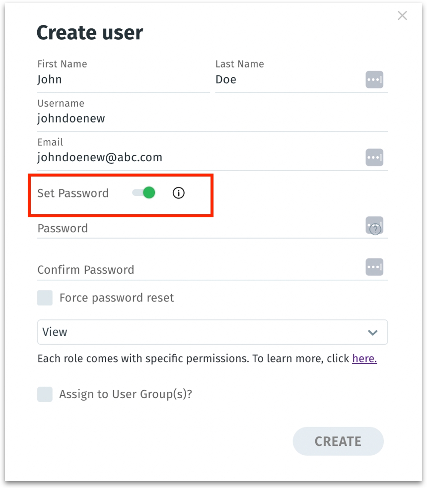 In addition, we've introduced a "Set Password" toggle in the user creation form. Setting a password is now optional—if you disable this toggle, the password fields will be hidden, allowing you to create users without a password. If you don’t set a password, then sign-in will be allowed through SSO only. This enhancement simplifies user management and enhances security by allowing accounts that rely solely on SSO for authentication.