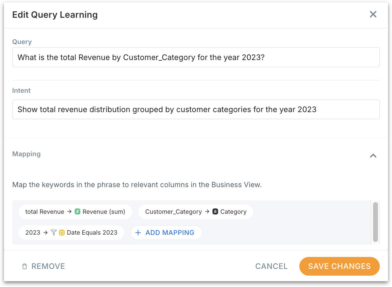 Kaiya now treats “intent” as an essential part of any query learning. Under Kaiya → Manage Learnings, query Learnings with only column mappings without an intent will be flagged with a warning. The intent defines the goal or meaning behind a natural language query, beyond just column mappings.