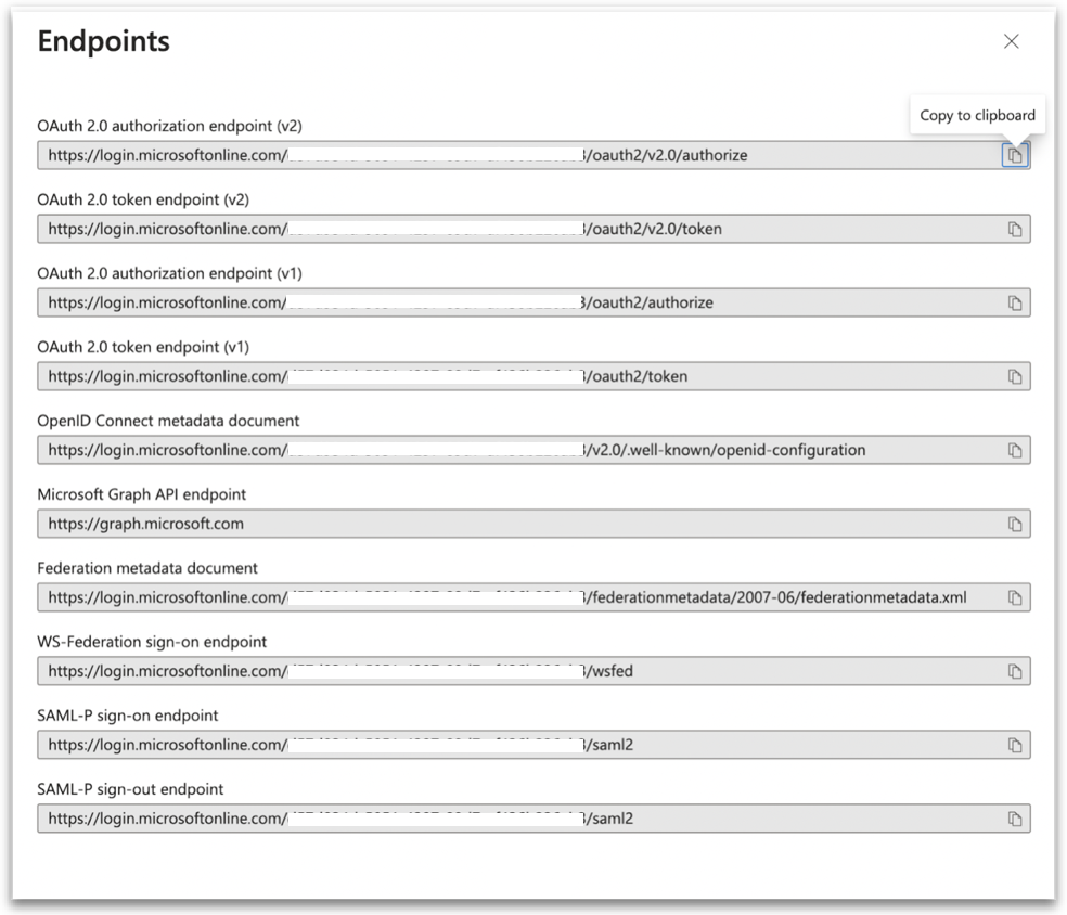 The OAuth 2.0 authorization endpoint (v2) should be similar to <https://login.microsoftonline.com/>\<tenant\_id>/oauth2/v2.0/authorize which will be referred as \<AZURE\_AD\_OAUTH\_AUTH\_ENDPOINT>