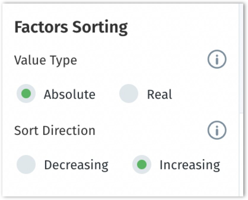 Decreasing: When selected, the factors will be displayed from the highest to the lowest value, based on the chosen value type (either Absolute or Real).