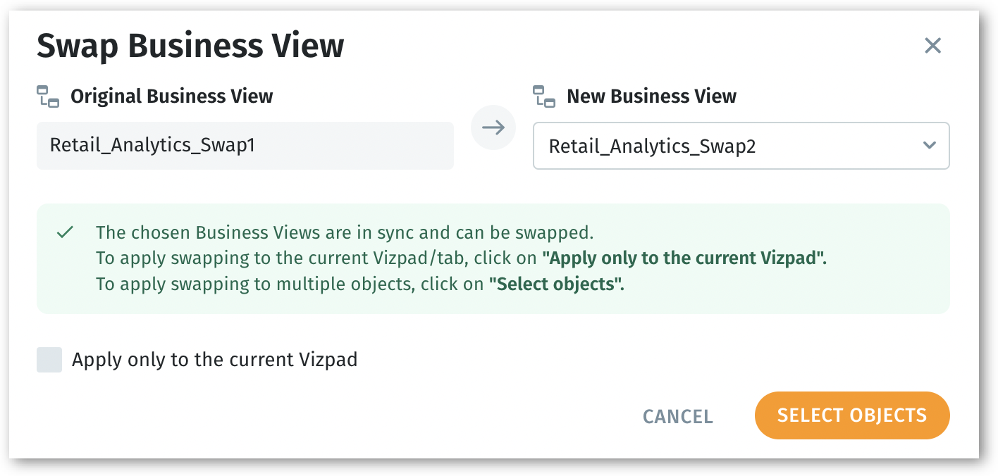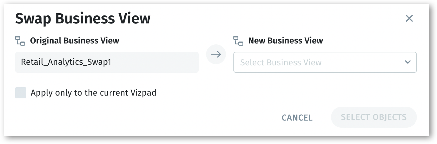 Swap the Business View behind any Vizpad chart while keeping its design and settings intact. Easily reuse visualizations across datasets with matching structures.