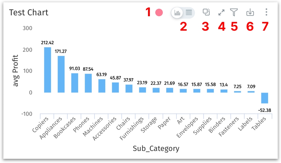 - Click on this icon to switch between the visual chart representation and its underlying table data.