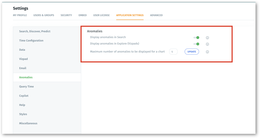 Display anomalies in Explore (Vizpads) - If enabled, the anomalies will be displayed for charts in Vizpads.