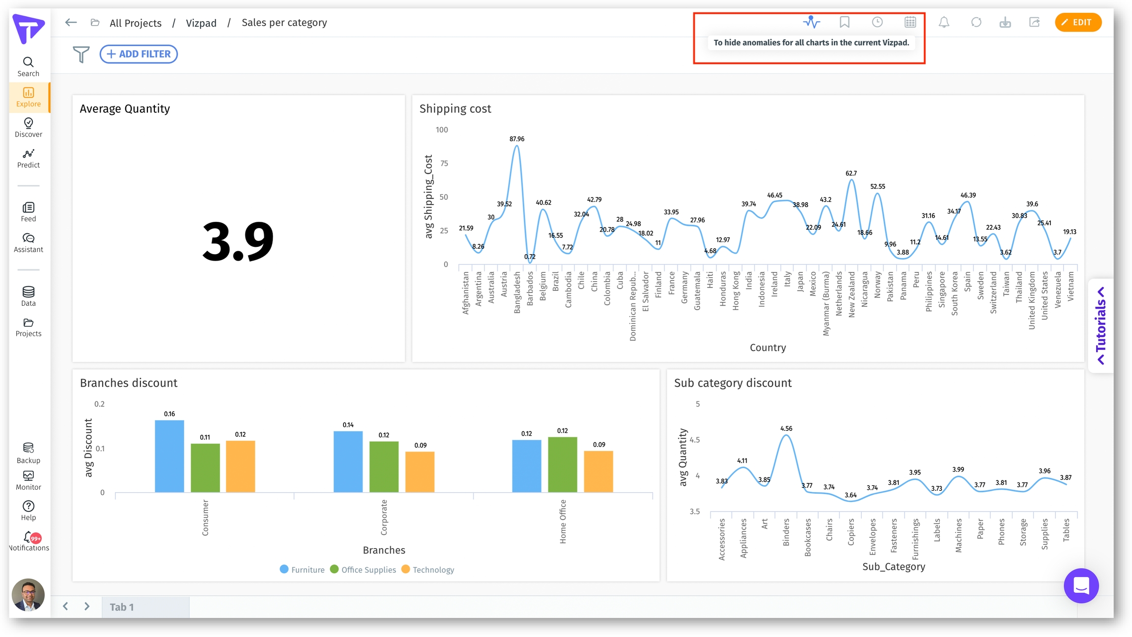On the top panel, you can find an array of icons. The first icon allows you to enable/disable anomalies for the current Vizpad.