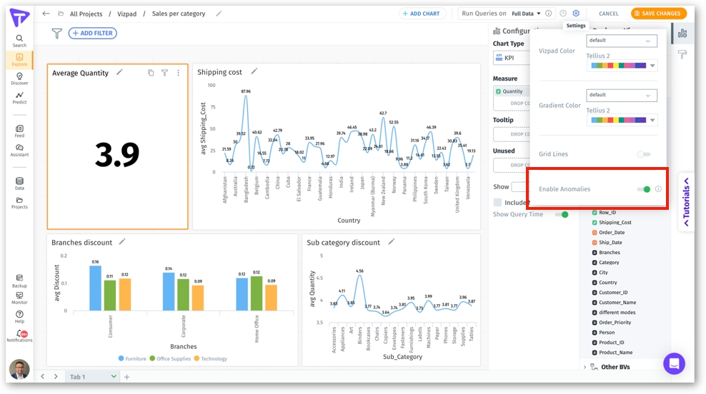 Enabling/disabling anomalies in Vizpads level will not change the instance level settings configured in Application Settings.
