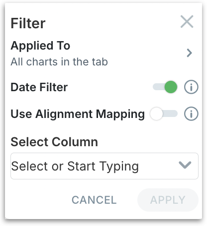 Enable the Use Alignment Mapping toggle if you want to refer only the mapped measures. This will be displayed only if Date filter is enabled.