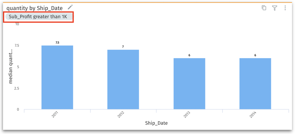 A grey filter pill indicating the filter applied will be displayed near the chart’s name.