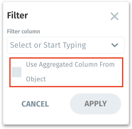 Use Aggregated Column From Object checkbox