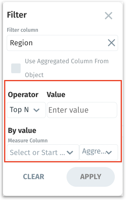 Top (N): Selects the top N entries from your dataset. Use "Top N" when you want to focus on the highest values in a set.