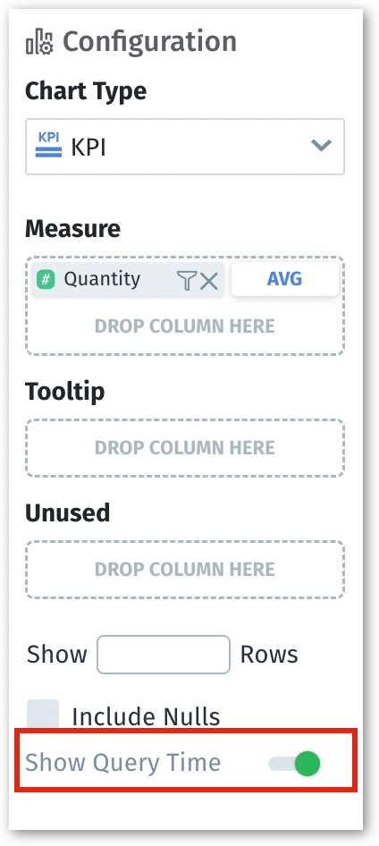In the right Configuration pane, if Show Query Time toggle is enabled, then a three-dot kebab menu will appear on the top right corner of the chart.