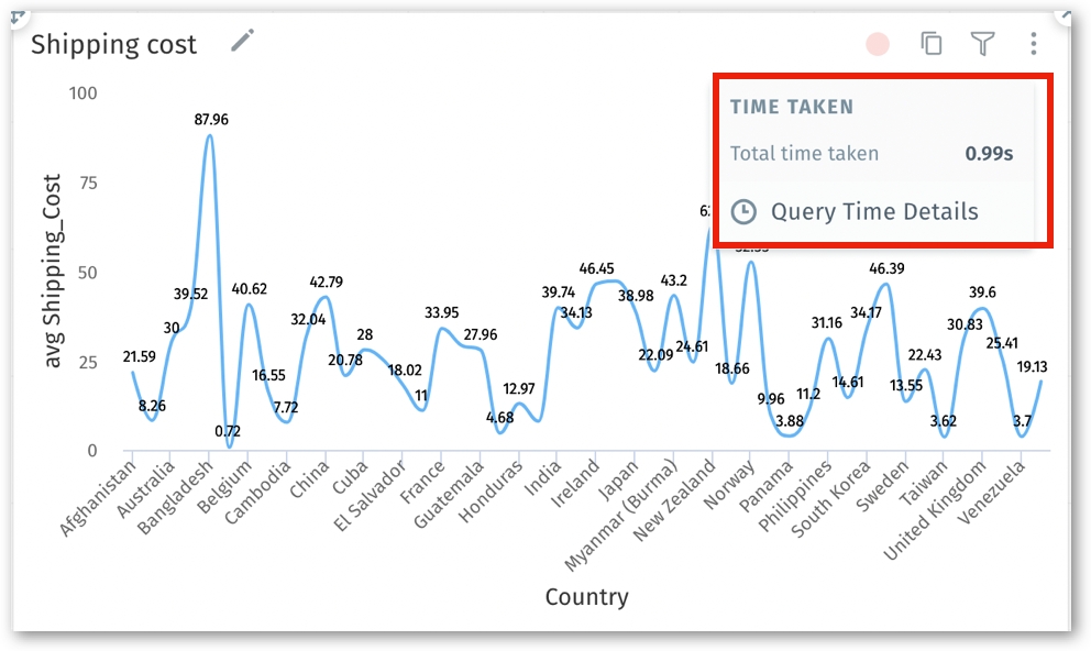 Click on the three-dot menu, and the time taken to execute a query will be displayed. Click on Query Time Details to view the breakdown of the time taken.