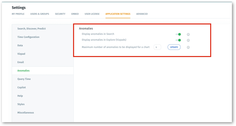 Admins can now control the visibility of anomalies in line charts at different levels to improve the performance of Vizpads and Search.