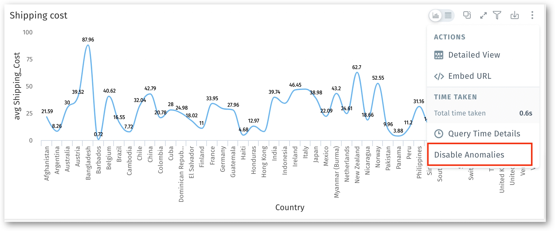 Chart level: To provide even more granular control, each individual chart in Search and Vizpads will include a toggle button to switch on/off the display of anomalies.