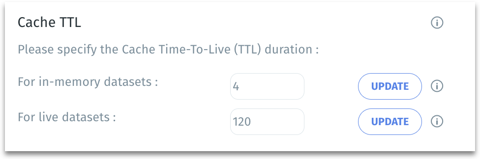 4.2.5 introduces a new feature that allows for direct configuration of the cache Time-to-Live (TTL) for live and non-live data sources from Settings → Application Settings. The TTL value specifies the duration for which the data remains in the cache before it's considered outdated and needs to be refreshed. By adjusting the cache duration to specific needs, users can optimize data retrieval, ensuring faster access and improved performance.