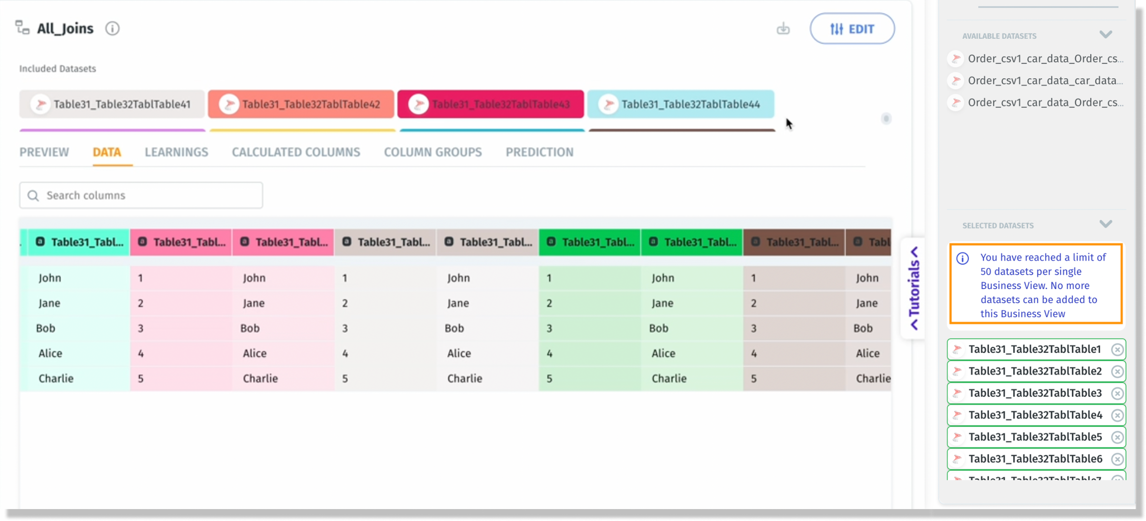 Increased limit of datasets for Business Views